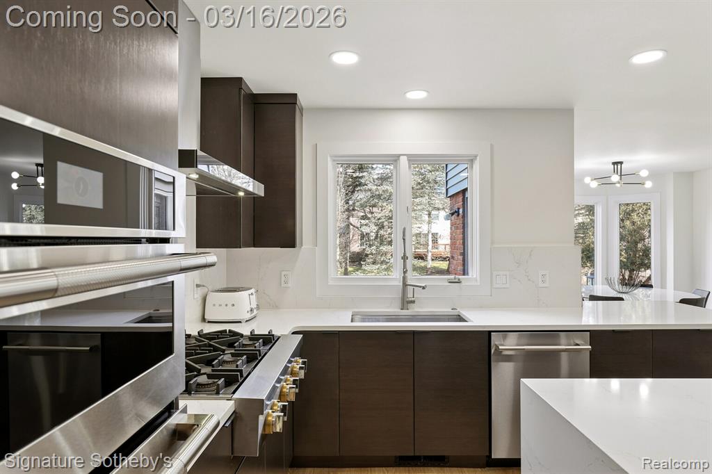 Designed for both everyday living and entertaining, the main level features a dramatic living room with soaring ceilings and a sleek linear fireplace, a dedicated office, and a formal dining room ideal for hosting gatherings. The fully updated kitchen showcases KSI cabinetry, JennAir appliances, a built-in wine rack, and a large island with integrated storage, complemented by a bright dining nook for casual meals. A rare dual-suite layout provides exceptional flexibility with both a first-floor primary suite and an additional primary suite on the second level. Upstairs, the expansive primary retreat includes a custom walk-in closet with built-ins and center island, while the spa-inspired bath features a soaking tub, separate shower, and a fireplace that adds warmth and ambiance. Functionality is thoughtfully integrated throughout the home with two laundry rooms, including a main-level laundry with a dog wash station and a convenient second-floor laundry room. The finished lower level extends the living space with a built-in bar and dedicated fitness room, creating an ideal environment for entertaining or recreation. Exterior improvements include new siding, refreshed landscaping, and recently updated mechanicals including a 2-year-old A/C and furnaces replaced within the last three and one-and-a-half years. Located in Rochester Hills, this home offers close proximity to parks, golf courses, and the vibrant shopping and dining of nearby Downtown Rochester, providing a balance of privacy, convenience, and an exceptional suburban lifestyle. |